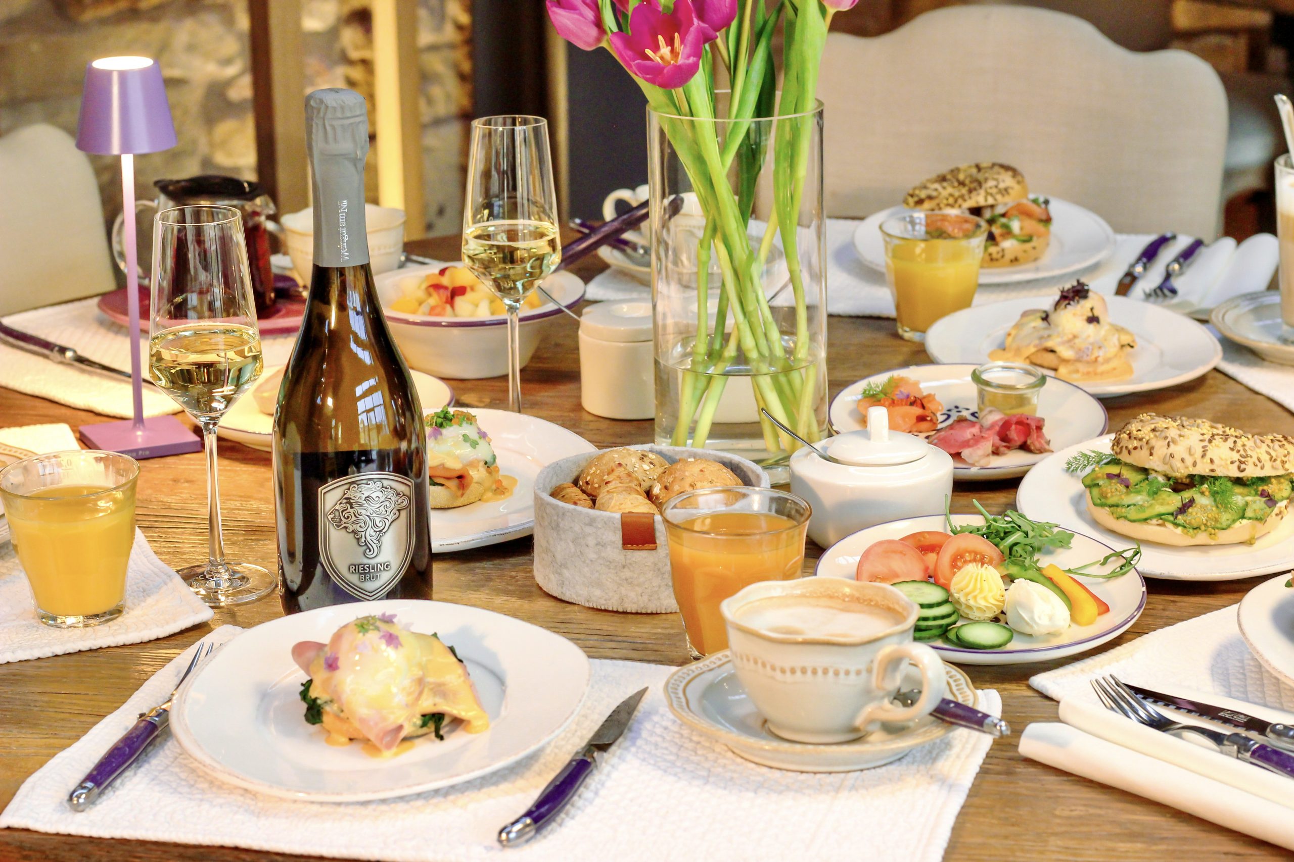 Starte in den Tag mit einem prickelnden Sekt und frischen Köstlichkeiten,